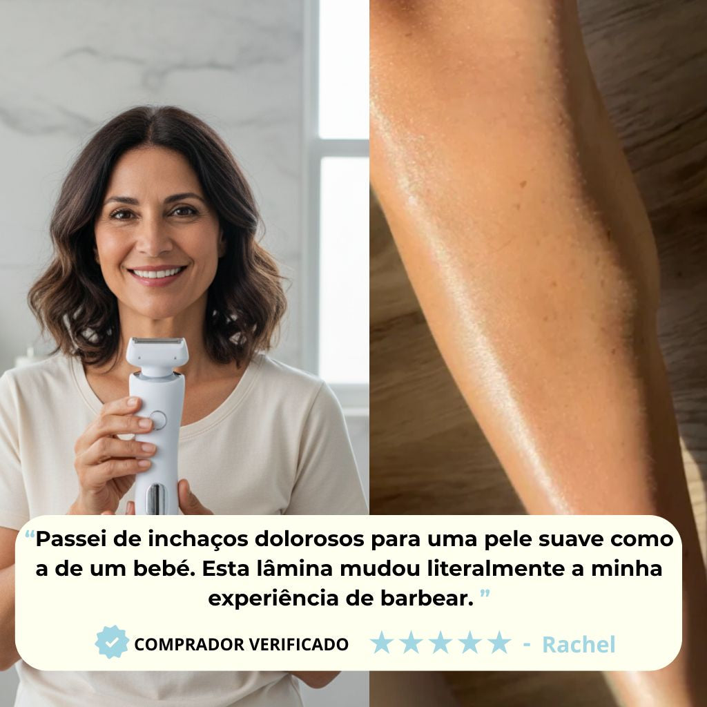 "Este aparelho deixou a minha pele tão suave e sem borbulhas. Adoro que possa ser usado debaixo de água ou em seco em qualquer parte do corpo. Super rápido também! Finalmente sinto-me ótima de bikini e calções!"